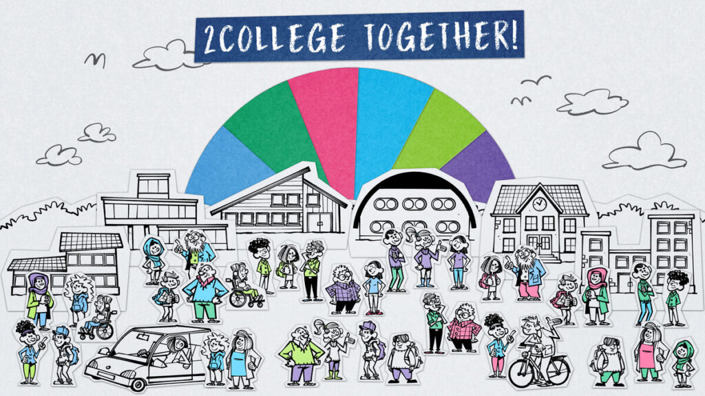 2College is een groep van scholen met onderwijs voor vmbo, havo en vwo en maakt deel uit van de vereniging Ons Middelbaar Onderwijs (OMO). Met zes unieke vestigingen biedt 2College een breed onderwijspalet aan, waardoor er voor elke leerling in Tilburg en omgeving iets te kiezen valt. Met een verwijzing naar onze naam nodigen we leerlingen, ouders en medewerkers uit. Let’s go 2College luidt de uitnodiging.