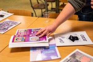 ‘Hé hoe ist?’ klonk het veelvuldig in de ontvangstruimte. Daar kregen de bezoekers een naamsticker en consumptiemuntjes uitgereikt. Al gauw zochten jaargenoten elkaar op in de daarvoor ingerichte lokalen. Speciaal voor dit feestje waren er collages gemaakt van de fotoboeken en archieven van Durendael.